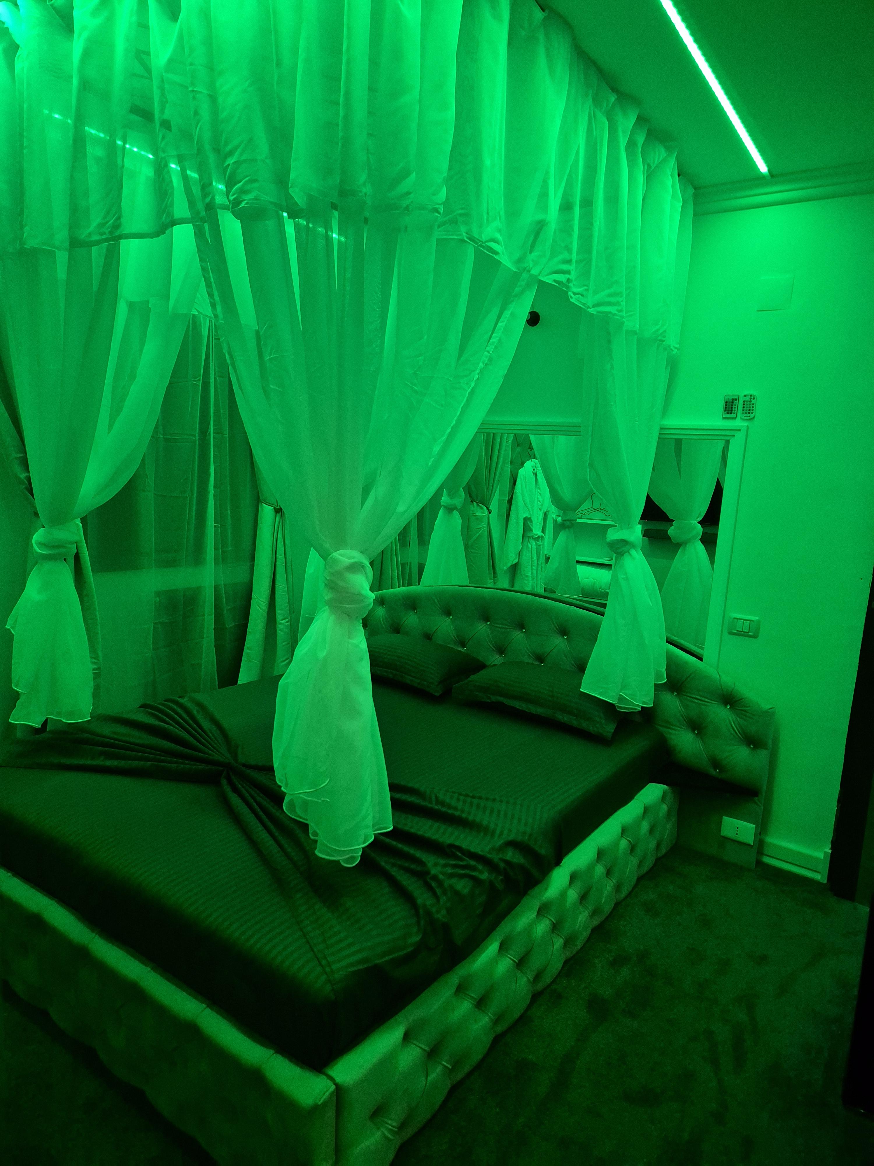 Aceasta camera are o suprafata de 25mp, pat cu baldachin, TV smart, masina de cafea, prosoape, articole de baie, sistem pentru muzica iar baia este prevazuta cu cada.